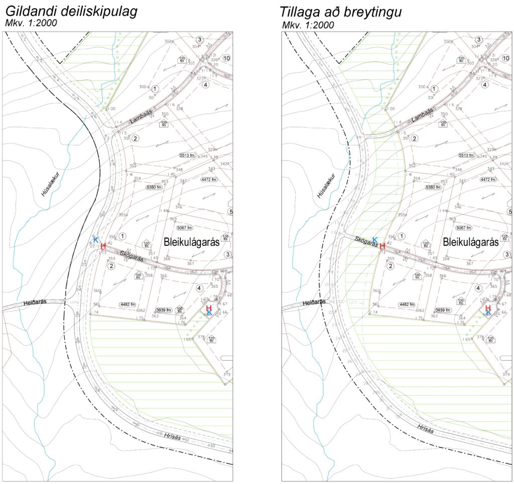 Það hafa verið gerðar nokkrar breytingar á deiliskipulaginu. Breytingarnar fólu í sér, færslu á legu vegakafla, stækkun og skiptingu lóðar í tvær lóðir og breyting á skilmálum.