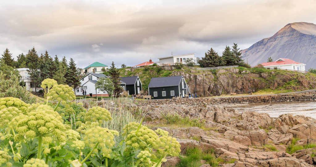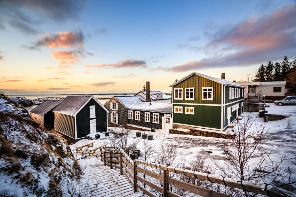 Áhersla var á það við hönnun svæðisins að nota efnivið sem samræmdist stemningu staðarins, þessarar gömlu miðstöðvar fólks og vöruflutninga og var því timbur og grjót í hleðslur fyrir valinu