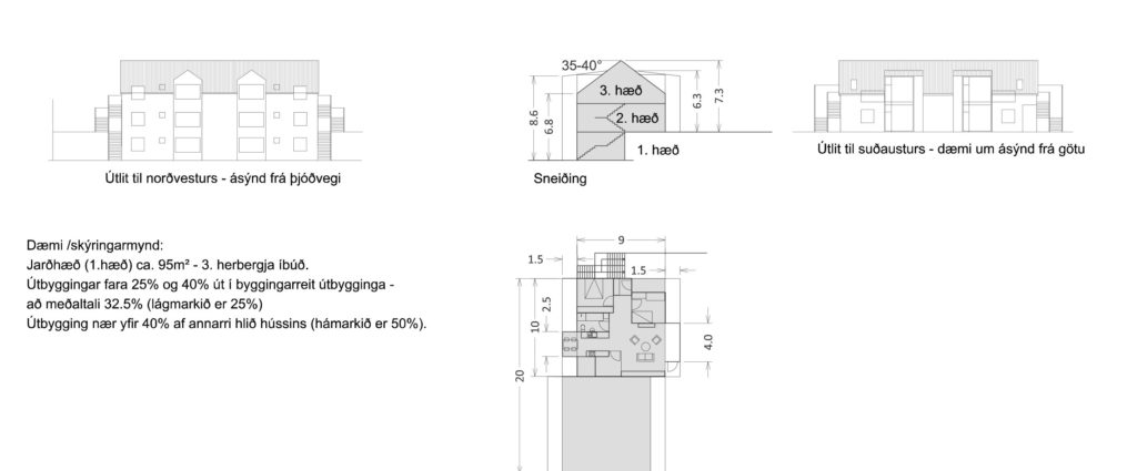 - – Skapa skilyrði fyrir fjölbreytni og ákveðnum sveigjanleika er varðar stærðir íbúða þar sem lögð er áhersla á minni íbúðir og sérbýli.